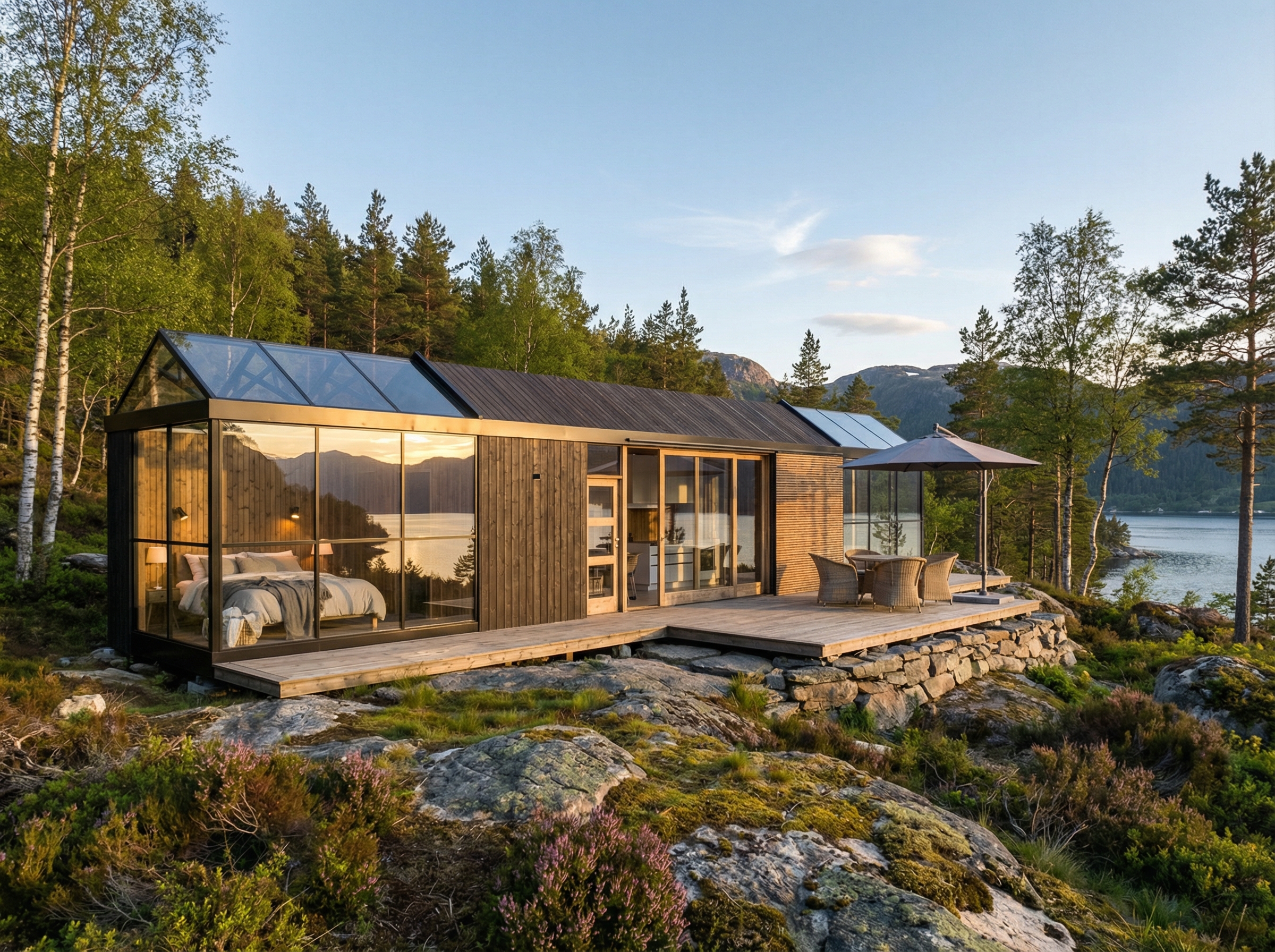 - Light & Shadow Atmosphere – Glass and timber create a constantly changing mood throughout the day.