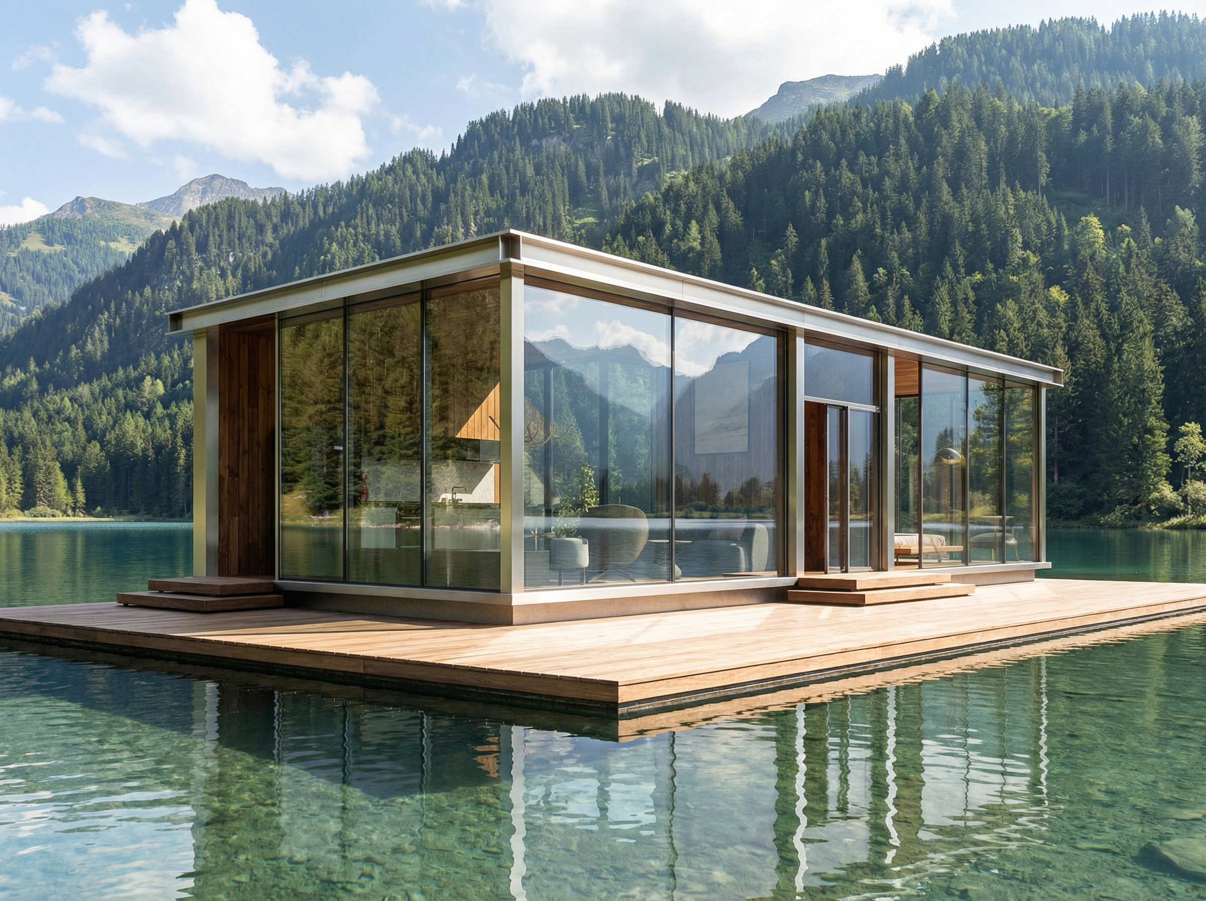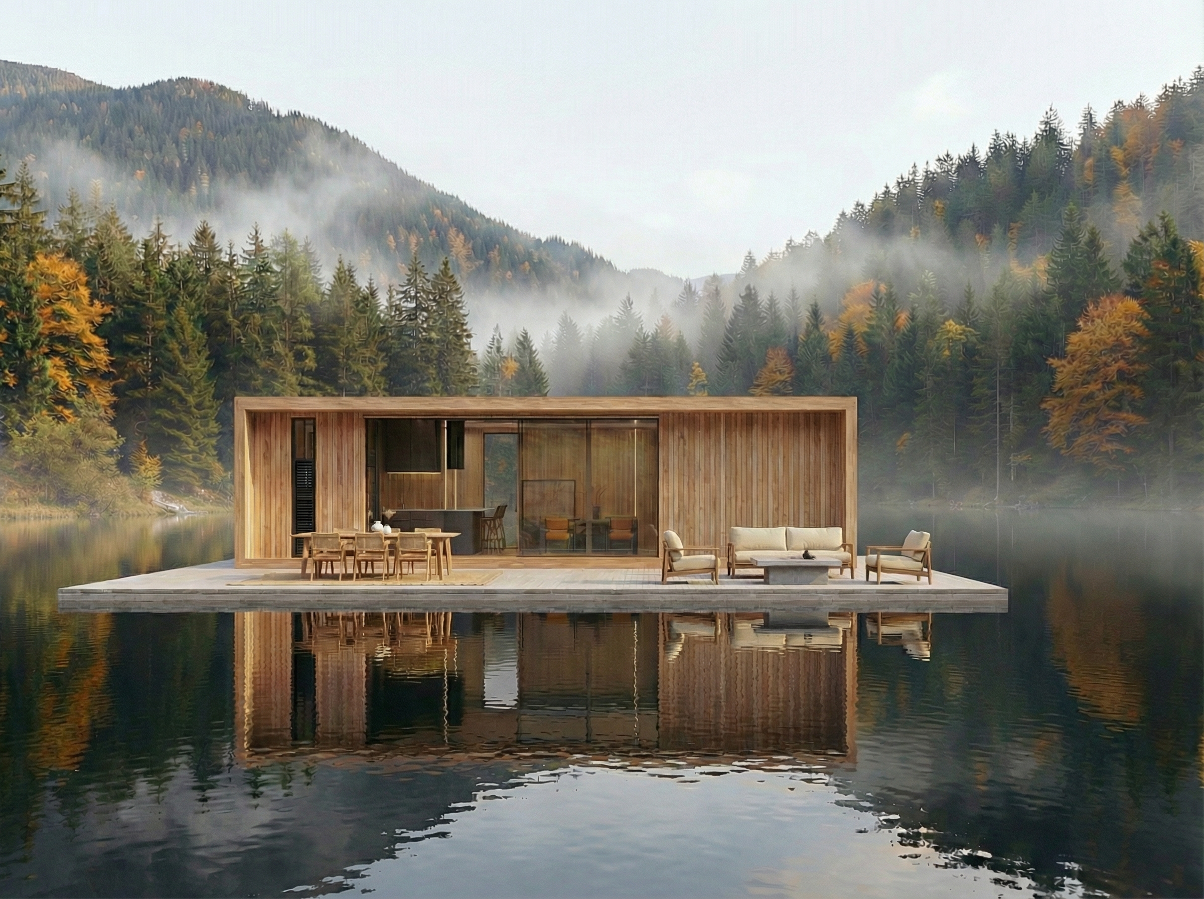 The Flux Collection is shaped by movement, reflection, and the ever-changing nature of water. Designed to exist in constant dialogue with lakes, rivers, and calm waterways, these homes rest lightly on the surface, embracing simplicity, balance, and fluid living.